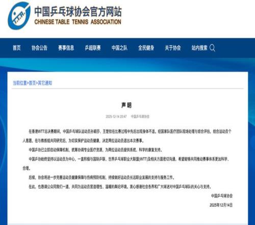12月14日,中國乒乓球協會發布聲明,全文如下: