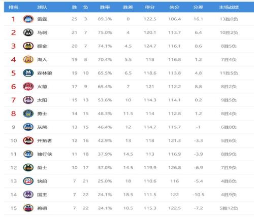 今日比賽後火箭、森林狼排名互換,國王、鵜鶘排名互換,其他西部球隊排名不變。