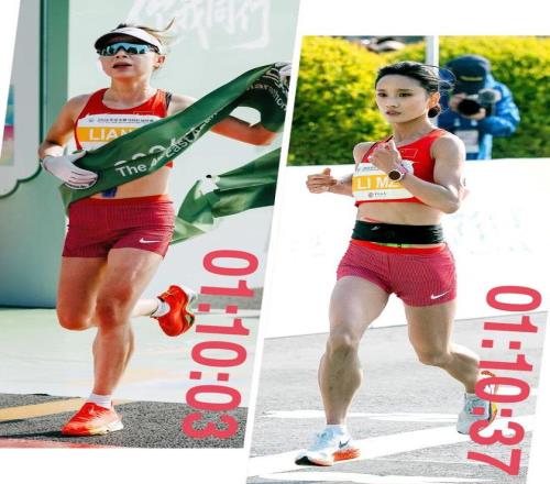 最終梁田田以70分03秒獲得東亞半程錦標賽冠軍。而上周無錫就“燃盡”的李美珍在中途追上梁田田時,主動為她帶跑並相互鼓勵,最後70分37秒獲得亞軍。