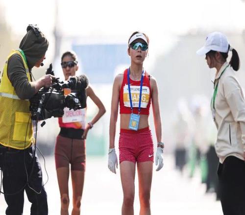 李美珍追上了梁田田後,倆人在賽道上還聊了幾句。梁田田回憶當時情景時說,“她慢慢追上我之後,跟我說加油,我也跟她互相鼓勵。”