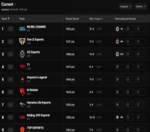 體育資訊4月7日稱 今日LOL全球戰力排行榜更新:奪得先鋒賽冠軍的BLG目前在世界排名第一,緊隨其後則分別是GEN以及先鋒賽亞軍G2。