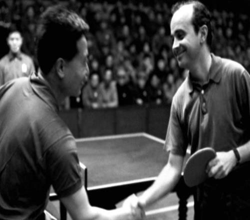班車到站,一直跟蹤中國隊每一個行程的日本媒體記者驚異地發現:一個中國運動員居然和一個美國運動員微笑著站在一起握手。這無疑是一條爆炸性的新聞。